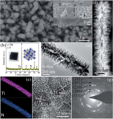 针对这一问题,近期金年会官网文伟教授团队以复杂空心结构氮化钛合金薄膜的构筑为例,提出了“表面诱导”柯肯达尔效应,通过对固态材料的表面修饰,诱导柯肯达尔效应的产生。氮化钛(TiN)是一种金属间化合物型的合金材料,具有高电导率和高硬度的特点。利用“表面诱导”柯肯达尔效应,成功获得了具有空心结构的分级氮化钛3D阵列;用其组装的超级电容器具有“超快”充放电的能力,且具有超长的循环寿命(35万次以上)。相关成果发表于J. Mater. Chem. A期刊(中科院1区,影响因子10.733,论文链接https://pubs.rsc.org/en/content/articlelanding/2019/TA/C9TA07642E#!divAbstract),金年会诚信信誉至上为第一完成单位,论文第一作者及通讯作者为文伟教授,2016级硕士研究生姚金呈为第二作者,论文合作者包括浙江大学吴进明教授等。该研究工作得到了国家自然科学基金项目(项目编号51862005、51502065)的资助。