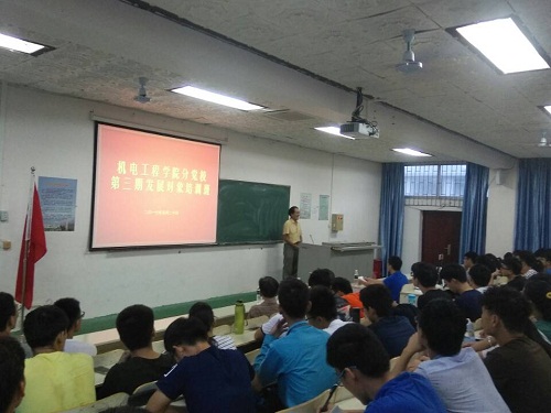 2017年5月20日15:3 0金年会jinnianhuicom分党校第三期发展对象培训班邀请程儒参、杨云山、林廷玖于1-T201讲授党课,报告由学工办主任、机械系第一学生党支部书记崔建兵主持。