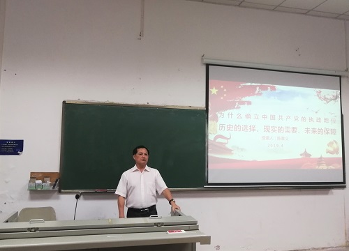 4月27日上午,金年会jinnianhuicom分党校第七期发展对象培训班专题党课于2-106准时开课。本次专题党课由学院党建特邀组织员陈泰义老师为大家进行专题授课——为什么确立中国共产党的执政地位。