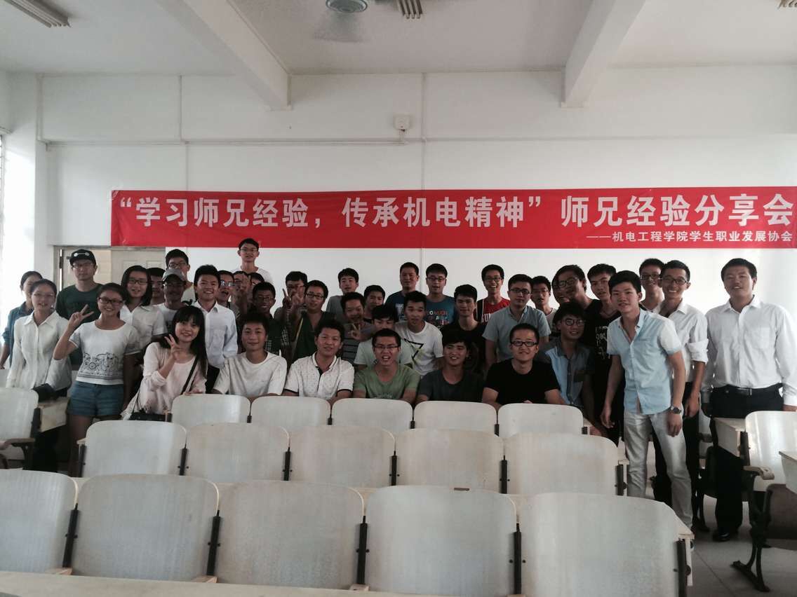 10月31日下午,由金年会jinnianhuicom学生职业发展协会承办的“学习师兄经验,传承机电精神”经验交流会在3号教学楼406教室顺利举行。受邀参加此次活动的有2011级王宇飞(考取北京理工大学研究生)、张小峥(4808军械修理厂技术工程师)、覃汉柱(蒂森电梯有限公司项目工程师),以及近60名报名参加交流会的各年级同学。交流会由金年会官网学生职业发展协会牧雅路主持。