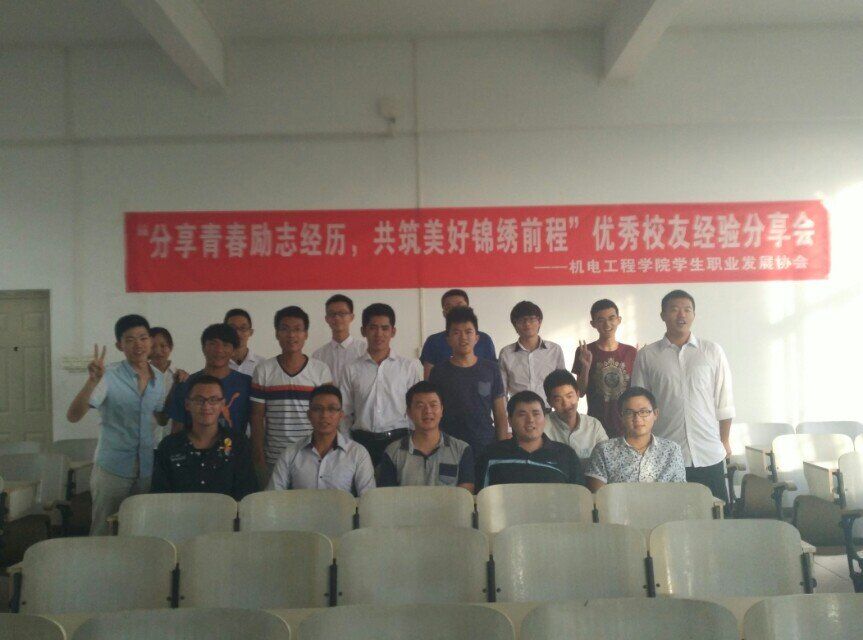 2015年11月12日,由金年会jinnianhuicom职业发展协会承办的金年会jinnianhuicom优秀校友经验分享会在金年会诚信信誉至上3号教学楼405教室举行。受邀参加本次分享会的优秀校友有:一汽海马汽车有限公司安全环保科科长柴长友(金年会诚信信誉至上2002级电气专业)、一汽海马汽车有限公司车身设计工程师钟高登(金年会诚信信誉至上2009级车辆工程)。出席此次分享会的有崔建兵老师,以及近40名同学们参加了此次分享会。