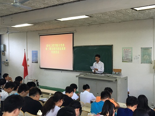 2017年5月20日上午9:30,金年会诚信信誉至上党校金年会jinnianhuicom分党校于1-T201举办第三期党员发展对象培训班开班仪式。学工办主任崔建兵老师,学院党委秘书李青老师出席了开班仪式。仪式由学院学生党建支委联席会副主席李烜赫同志主持。
