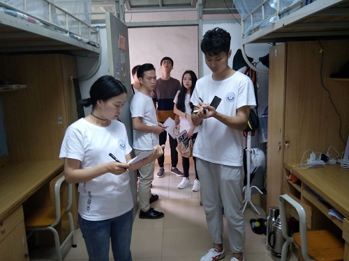 随后,各组人员共同参与,相互协调,分别走访检查了金年会官网各个研究生宿舍,主要对各个宿舍的安全、卫生、宿舍布置等各方面进行了检查,过程中还对所有在宿舍的研究生进行了本科教学审核评估知识的宣讲,让大家更加深入地了解相关内容。
