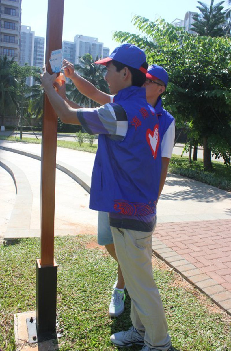 当日上午九点,志愿者们以学校东门为起点,沿东坡湖畔开始环境美化工作。放眼望去,湖畔似乎格外干净,但一路下来,烟蒂、一次性筷子、烟盒、塑料袋等还是占满了垃圾袋的有限空间。此外,志愿者们还将沿途的路灯和建筑物上的小广告进行了清除。