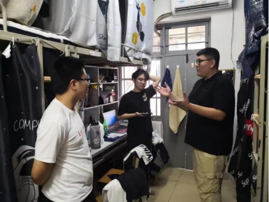 此后,老师们又走访了学院其他年级的学生宿舍。在走访时,询问了解每一名同学的学习生活情况;并表示如果哪位同学需要帮助,一定要向辅导员、班主任反映,学院会立即派给予相应的帮助,做到让每一位同学能安心学习,快乐生活。由于临近期末,老师们都再次叮嘱同学们要扎实学习,努力提升专业技能,并预祝同学们在期末考试中考出好成绩。同时,老师们也提醒大家在备考之余,注意防范宿舍用水用电的安全隐患,严禁使用任何违规电器,也不要因为熬夜“奋战”而忽视了宿舍内电器的用度。