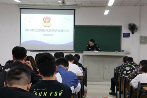 近年来,电信网络诈骗猖獗,诈骗分子利用信息化发展大潮,针对全民网络化生活之利,借网上电子支付的便捷,设计出花样繁多、层出不穷的诈骗手法,让人民群众防不胜防。为了使学生熟悉生活中常见的诈骗形式,增强学生在生活中遇到诈骗现象灵活应对的防范意识,提高学生各方面自我预防、自我保护、自我应对、自我逃生的能力,12月15日下午,金年会jinnianhuicom特邀海口市美兰区人民路派出所为学院学生开展电信网络新型违法犯罪防范知识宣传。
