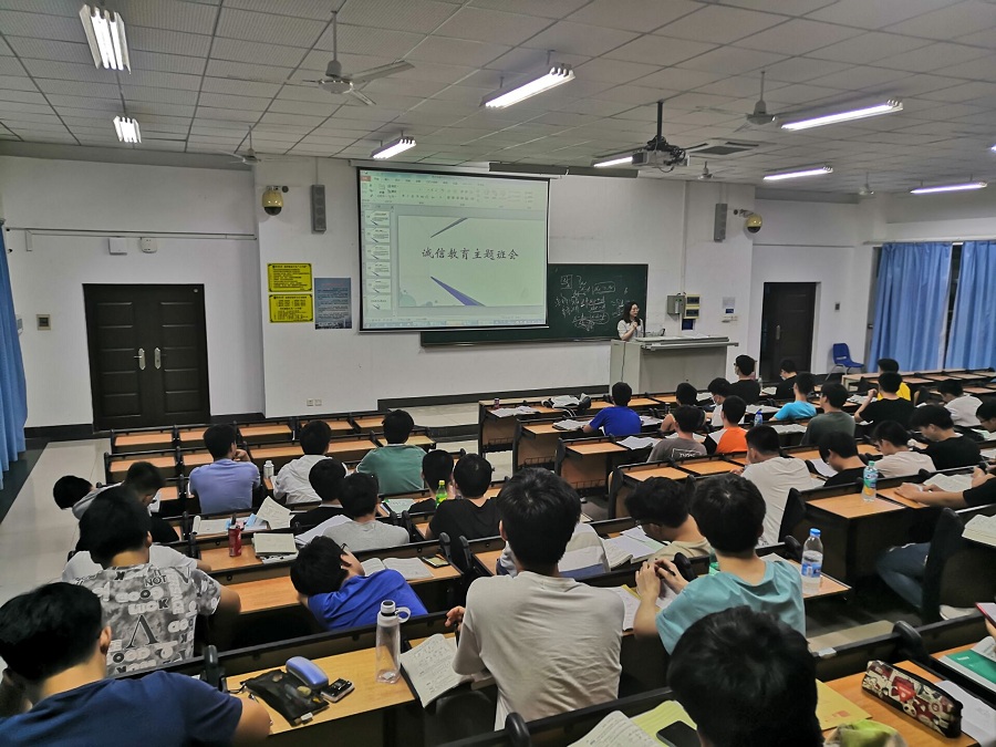 弘扬诚信,召开主题班会。6月1日至6月25日,金年会jinnianhuicom各年级召开诚信教育主题班会。主题班会形式不一,部分班级以演讲形式开展,部分班级以播放诚信相关视频开展,结合诚信典型人物及事件,强调诚信立身、诚信立家、诚信立业、诚信考试,呼吁学生养成诚实守信的良好习惯和道德品质。