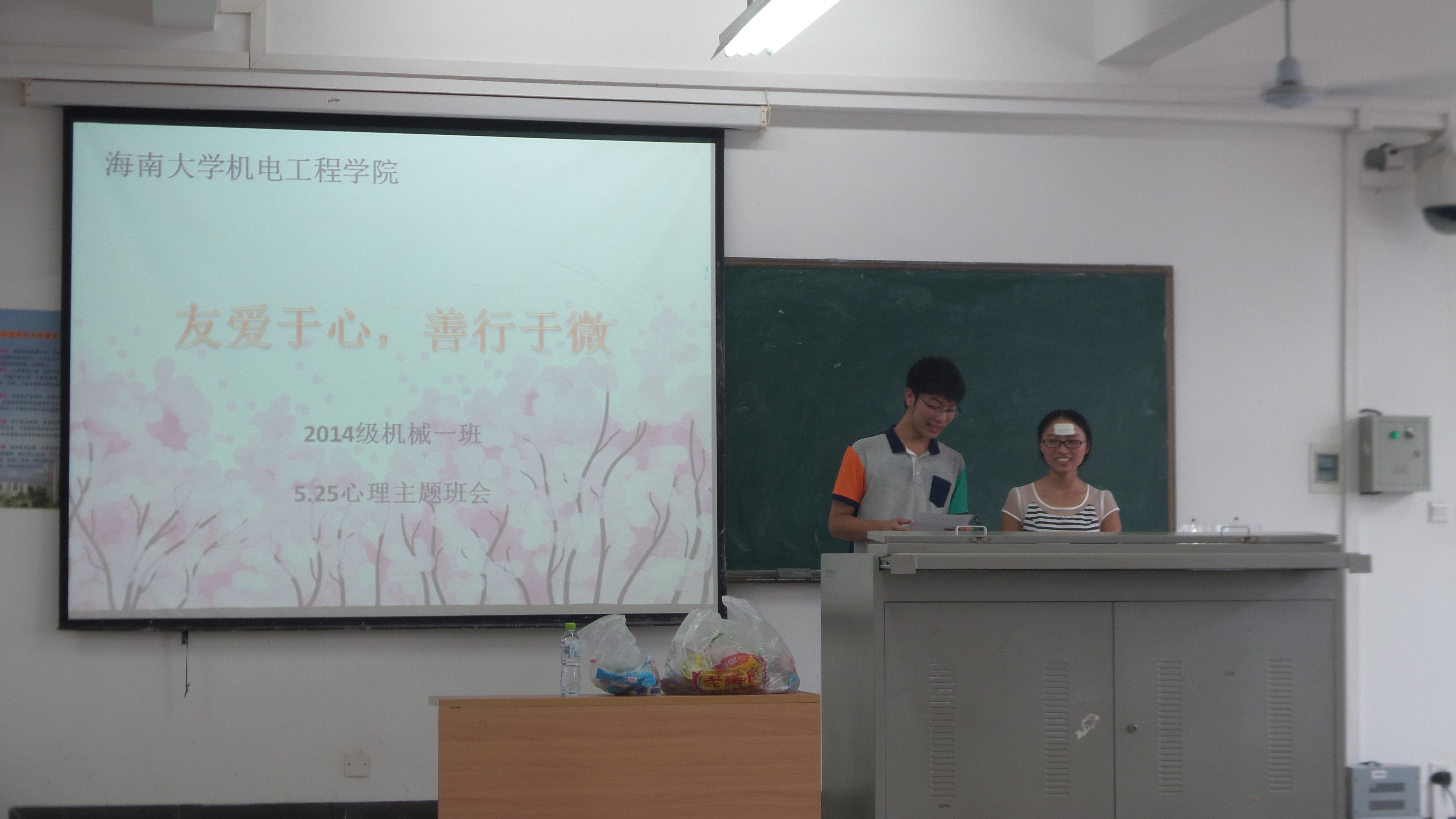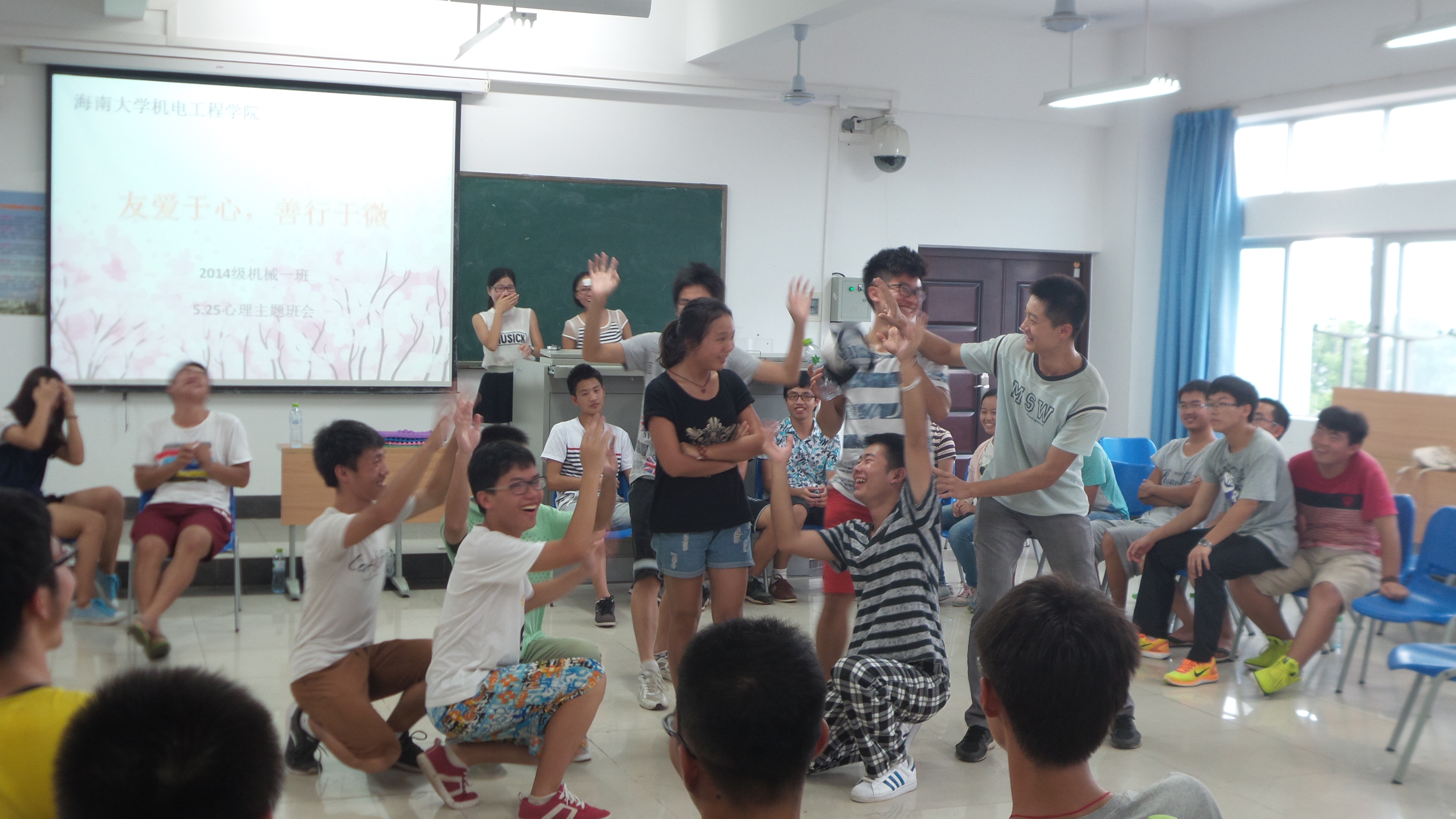 为了增强金年会官网学生的心理健康意识,提高自我调适能力,促进大学生心理健康教育工作的开展。按照学校5.25心理活动月的统一安排,5月26日下午四点三十,2014级机械设计制造及其自动化1班在4教412举行了“友爱于心,善行于微”主题心理团体辅导班会。李青老师以及14级机械1班全体学生参加了此次班会。