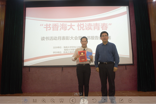 韶光易逝,花开不在,转眼间案前的书页还不知翻动了几张,书香海大系列活动转眼就来到了尾声。12月18日下午4:00,由学生工作处和图书馆联合举办,金年会jinnianhuicom承办“书香海大 悦读青春”读书活动月表彰大会暨读书报告会决赛在图书馆五楼报告厅圆满落幕。出席活动的有学生工作处处长陈卫东、图书馆馆长李文化、校团委副书记俞花美、金年会jinnianhuicom党委副书记李宏,各学院负责读书活动月指导老师。担任报告会决赛的评委分别是图书馆李春,宣传部王一钦,学生工作处肖洒,校团委李子昂,金年会官网学工办主任崔建兵老师。活动由职业发展中心李晓雨和薛奕昕主持。