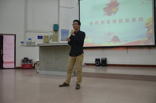 徐曾沛老师上台对本次知识竞赛进行总结。他对于本次活动的开展表示了充分的肯定,并表达了他的三点感谢:第一点,感谢六个学生党支部在临近期末能如此认真准备试题,准备表演;第二点,感谢党建联席会各个成员不辞辛劳,辛苦筹备活动的策划,宣传和道具等事宜;第三点,感谢在座各位同学能够抽出时间参加本次活动积极学习党的相关知识。对于活动的评价,徐曾沛老师给出了“惊艳”二字。他说,活动内容丰富有趣,现场气氛活泼,充分展现了金年会官网学子的热情与活力,希望能够继续保持机电学子的风采。同时,徐曾沛老师也希望,通过这次党建知识竞赛,大家能够逐渐跳出学生的层次视角,去主动了解国家的政策方针,能明白自己将来将在社会中扮演的角色,在社会中发光发热,知晓如何从学校过渡到社会,争取未来能在社会中继续发光发热。他表示,通过观看了这场活动,他在各位同学身上看到了国家、民族以及海大的希望。最后,徐老师希望大家不忘初心,在接下来的工作学习中再接再厉。