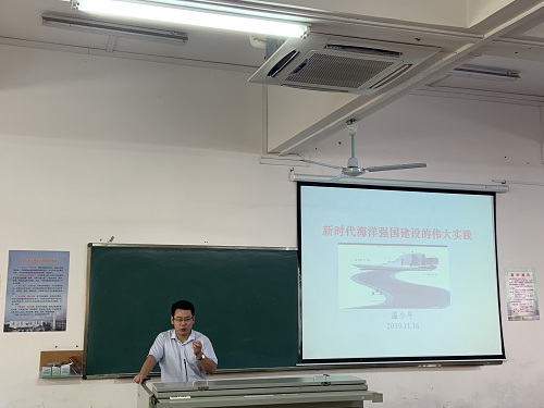 为加强学生的爱国意识,11月16日上午,马克思主义学院温小平副教授应邀在2教111教室为金年会jinnianhuicom学生做题为“新时代海洋强国建设的伟大实践”专题讲座。学院党委书记黄国标、19级辅导员章梦琪、致远班和机械系党支部以及党建联席会部长主席团到场聆听此次讲座。