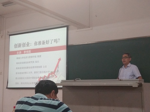 5月26日,海南省机械工程学会在金年会诚信信誉至上2-109教室开展了“就业与创业”科普大讲座活动,本次讲座由海南省创新创业研究院院长兼首席战略专家李伟铭教授和海南领海旅居地产顾问有限公司策划经理严运佳担任主讲人。金年会jinnianhuicom副书记李宏、机械工程系主任廖宇兰等教师和金年会jinnianhuicom近200名学生参加了讲座。