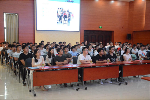 随后,围绕中国方程式大赛及我校南海车队情况,汽车系老师张建珍展开讲话。她介绍到:大学生方程式大赛,是由各国汽车工程师协会面向在读或毕业7个月以内的本科生或研究生举办的一项比赛。各参赛车队按照赛事规则和赛车制造标准,在一年内自行设计和制造出一辆在加速、制动、操控性等方面具有优异表现的小型单座方程式赛车,参加静态和动态等8项比赛。