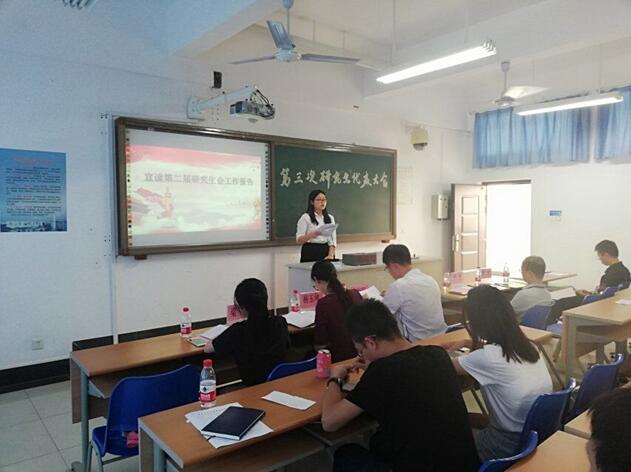 9月16日下午,金年会jinnianhuicom研究生第三次研究生代表大会在4教307隆重召开。出席本次会议的有党委副书记李宏、校研究生会主席曹献阳、人文传播学院研究生会主席梁羽、外国语学院研究生会主席杨玉珅以及金年会jinnianhuicom全体研究生。会议由研究生代表姜鸿主持。