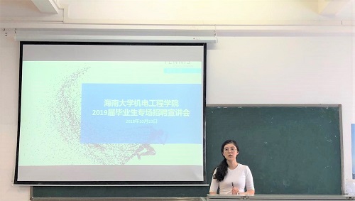 会上,各家企业负责人从公司概况、企业文化、企业员工培养模式、企业目前的发展状况等方面向同学们作了详尽的介绍。其中,海口链家的“链+新生代专业升级计划”以及“注重打造国民品牌”的企业精神深受广大毕业生所认同;中铁铁路运营管理有限公司优越的薪资制度、充满人情味的用人制度以及“多位一体,不拘一格,德才并重,有为有位”的口号更令众人耳目一新。昌江水务局作为朝阳企业,其巨大的发展潜力令众人向往;一嗨租车公司“管培生加速成长计划”、“高管代教”、“赴美学习”等丰富项目亦是深受好评。会议尾声,海口学而思代表与大家分享了他们“科技推动教育进步”的企业理念以及“成为受尊敬的教育机构”的愿景,赢得了大家的掌声。