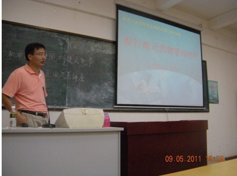 2011年5月9日晚上7:30在3302课室,电气系唐荣年博士应邀作了题为《渐行渐近的物联网时代》的专题讲座。讲座推动了金年会官网第一届“科技文化节”活动的开展,也为进一步描述了电气系专业前沿科技技术。