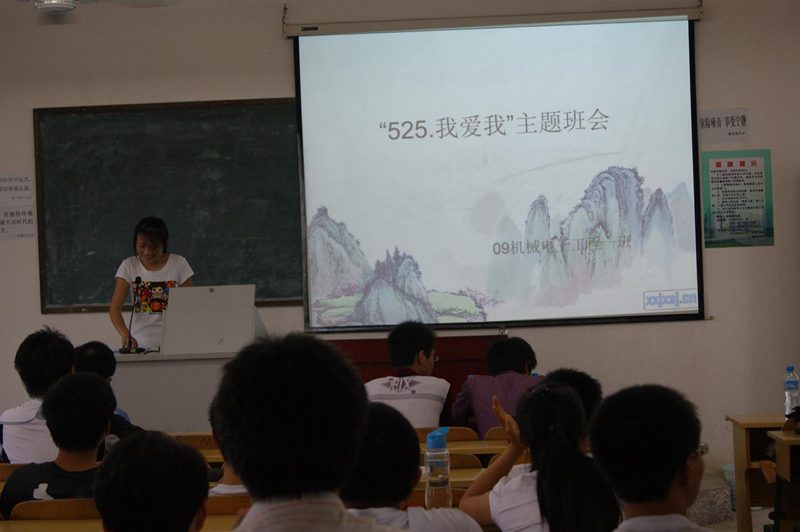 为迎接金年会诚信信誉至上2011年“525我爱我”大学生心理健康教育活动月,09机械电子工程1班于2011年5月16日下午2:30在3404课室开展了形式多样、内容丰富的心理班会。会上还特邀请了班主任梁栋老师和辅导员崔建兵老师。 本次班会的主题是:“展现自我,拥抱自信”。班会依次分为四个环节:各宿舍展示ppt;“夸夸人”互动游戏;大家讲讲心里话;观看自制的09机械电子工程1班成长录并合唱歌曲。