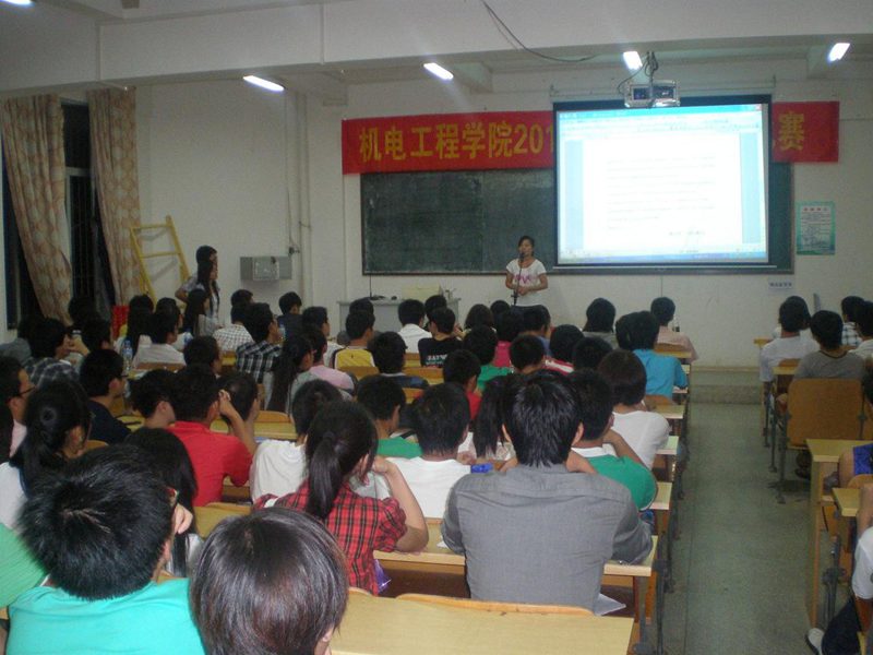 为了迎接2011年“外研社杯”全国英语演讲比赛,金年会官网在9月8日(星期四)在3302课室举行院内选拔。出席此次英语演讲比赛的嘉宾有崔建兵、姚广龙老师,担当评委的有应用科技学院英语老师王菲、金晓霞,以及全国大学生英语竞赛(NECCS)获奖者马鑫。此次演讲的题目是:A Word That Has Changed the World。比赛选手由各班级推荐,共15名参赛选手,到场观众有近160名。
