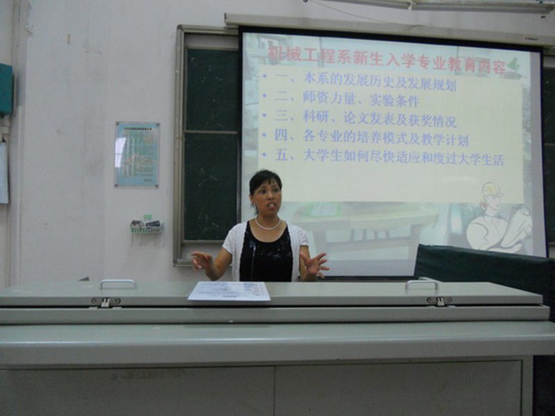 机械系系主任廖宇兰作专业教育