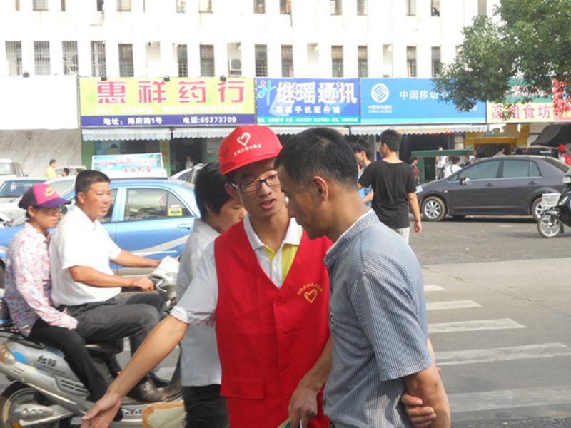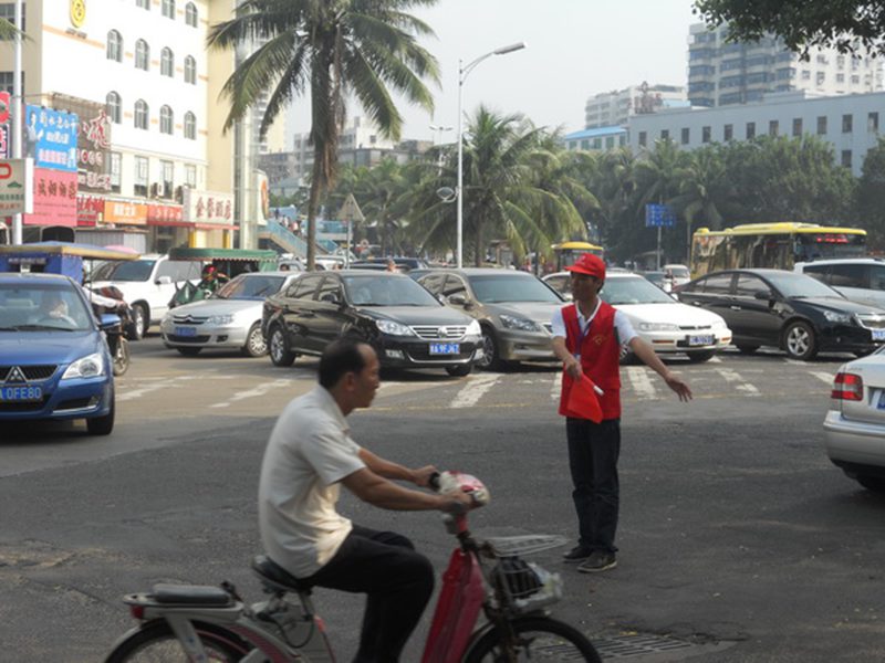 此次活动得到了海口市青年志愿者协会的大力支持。活动当日,志愿者们由金年会诚信信誉至上东门集合来到海口市交通最为拥挤的东湖。抵达东湖之后,通过海口市青协负责人的介绍和实地观察,志愿者们详细的了解了东湖周边的交通环境,然后分为两组开始行动。他们头戴小红帽,身着红色志愿者服装,分别在公交车站及过街天桥周围维护交通秩序,发放交通安全宣传资料。活动期间,志愿者们表现出了极大地服务热情,在他们的努力之下,当日东湖地段的交通状况有了明显改善。