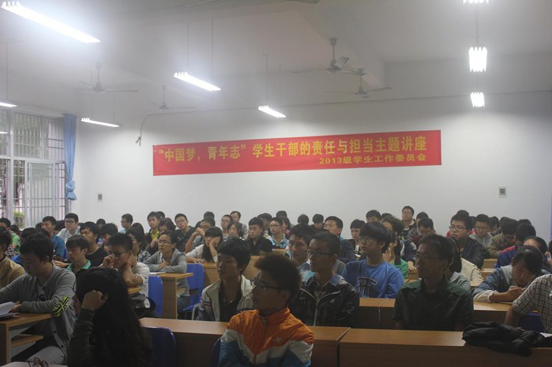 为增强学生干部责任与奉献意识,树立良好楷模形象以带动学院学风与文化建设,12月2日下午,金年会jinnianhuicom特邀我校退休老干部程儒参同志在5教102针对2013级学生干部举行以“中国梦,青年志”为主题的讲座,对学生干部的责任与担当给予最真挚的寄语与建议。出席讲座的有退休老干部王荣老师,2013级一百多名班干部。讲座由学工办教师崔建兵主持。