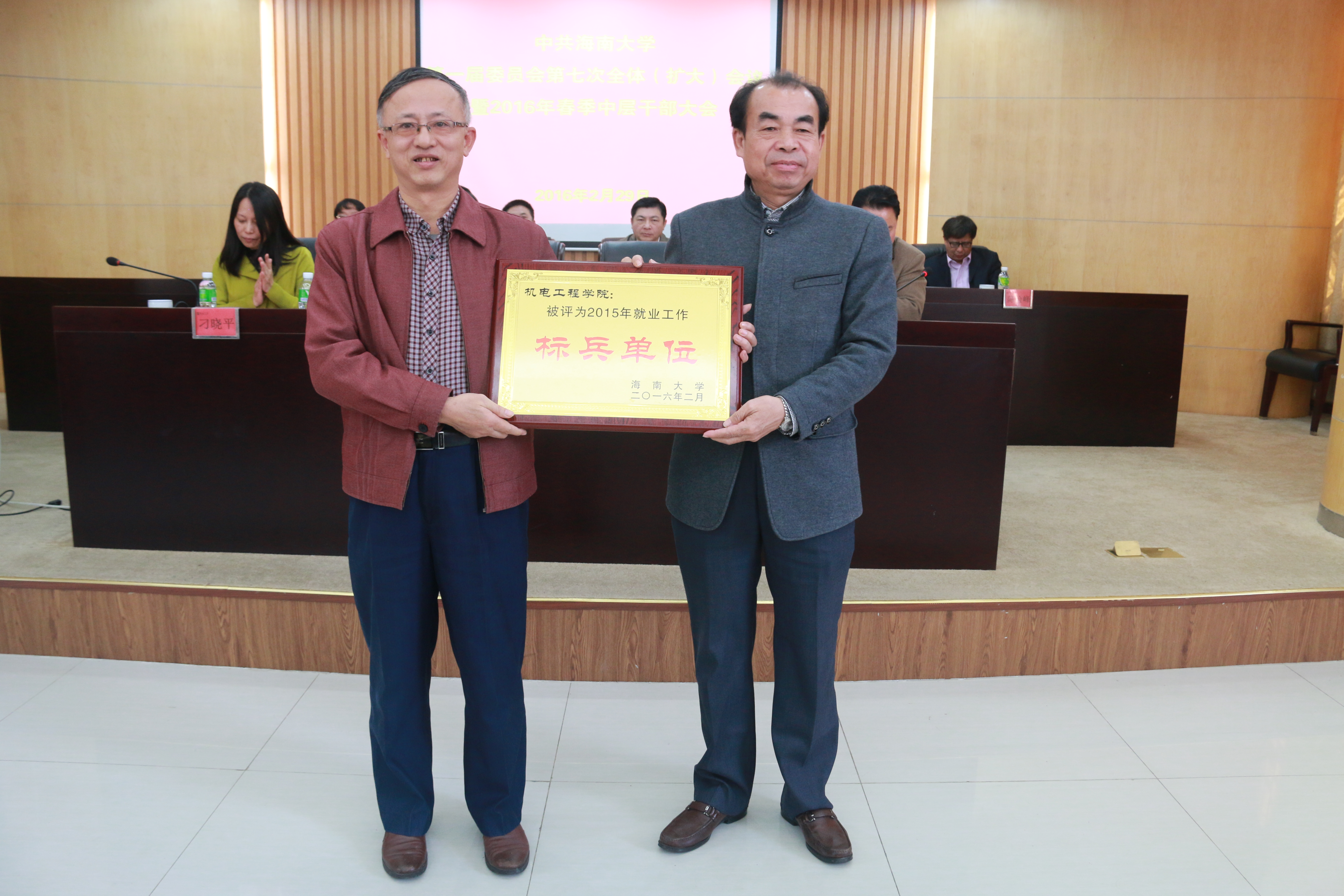 校党委刘康德书记为金年会官网颁发“2015年就业标兵单位”称号
