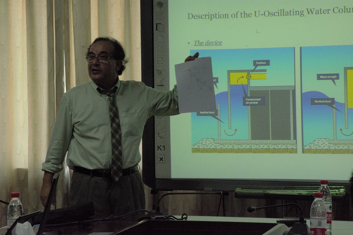 马庆芬副院长对Pol D. Spanos教授的到来表示欢迎,并用英文从历史沿革、师资结构、学生培养、对外交流与合作、科学研究等方面介绍金年会jinnianhuicom。随后,Spanos教授对非线性随机振动分析理论进行了深入的剖析,细致地介绍了非线性随机振动分析技术在机械工程、航天工程、车辆工程、控制工程、材料工程等领域的应用前景,尤其以振荡水柱岸式波浪能发电系统中波浪能采集的结构参数优化为例,具体介绍了该项技术的应用过程和效果。讲座中Prof.Pol D.Spanos儒雅的气度,严谨的论证,风趣的语言激发了师生们的兴趣,参会师生踊跃提问,与Spanos教授开展了热烈的互动与讨论,学术交流气氛活跃。