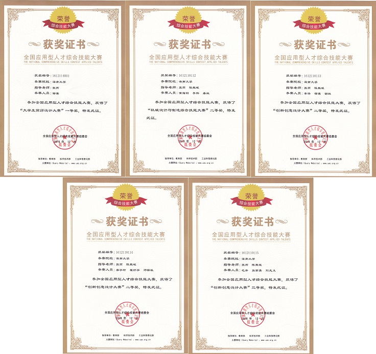 在学校教务处的大力支持和悉心关怀下,在金年会官网陈振斌教授、张燕副教授悉心指导下,邹骞在大学生简历设计大赛中,从138位决赛选手中脱颖而出,以第一名的身份获得一等奖,实现首次突破。同时,在机械设计与制造综合技能大赛中,“行成于思”代表队(黄耀明、李伟、唐政)获二等奖;在创新创意设计大赛中,“大道致远”代表队(李伟、邹骞、谢航)和“三个臭皮匠”代表队(廖宇轩、翟好宇、邓镓敏)获二等奖,“无敌是多么的寂寞”代表队(范奔、张紫嘉、刘光义)获三等奖。
