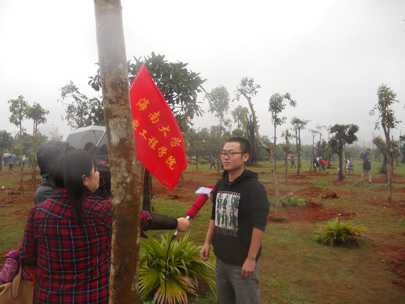 早晨7点40分,金年会官网团学干部和青年志愿者于海大北门集合,乘车到达植树地点——世纪公园。经过短暂的队伍整理后,大家领取了植树工具并投入了紧张的植树工作。尽管天气不好,同学们还是积极投入工作,植树现场很快呈现出一派热火朝天,争先恐后的劳动场面。有的同学搬运树苗,有的同学扶树苗,还有的同学填土,植树活动合理有序的进行着。经过一个多小时的努力,原本平整的土地上种满了绿树。“虽然很辛苦,但是能为城市绿化作出自己的贡献,我们感到很高兴。”这是一名团学干部接受电视台采访时说的话,也道出了所有参加植树活动的同学的心声。