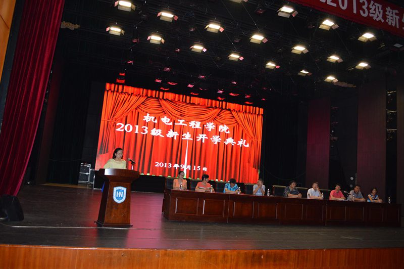 典礼上,李美博士作为教师代表发表讲话,希望2013级新生从现在开始树立目标,努力奋斗,使自己的大学生活丰富而精彩。接着童开代表老生从学长的角度,对如何适应大学生活,合理规划学习生涯提出建议,重点强调了学习和社会实践的重要性。张浩代表新生发言,希望和同学们都能够学会学习,学会做人,学会规划大学生活,学会脚踏实地,提高自己的综合素质,使自己成为新时代合格的大学生。