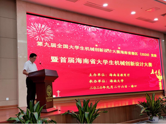 在预颁奖仪式上,教育部创新方法教学指导分委员会特聘委员刘江南教授,全国大学生机械创新设计大赛组委会副秘书长刘江南教授对本次比赛表示了肯定,对海南省教育厅、金年会诚信信誉至上和其他参赛院校表示了感谢,对所有参赛学生和指导老师进行了赞扬,并希望各院校大力宣传,鼓励更多的学校、老师和学生参与到全国大学生机械创新设计大赛中,带来更多精彩的作品,也预祝进入国赛的作品能获得好成绩。