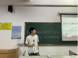 党支部书记章梦琪对学生代表分享的内容进行了相应的补充,并对与会同志提出了要求与希望,要求大家在日常的学习和生活上严格要求自己,并在课后认真学习党的十九届五中全会的内涵;并希望作为当代大学生的广大党员同志和积极分子们要有新时代的担当,能为国家新时期的建设贡献自己的一份力量。