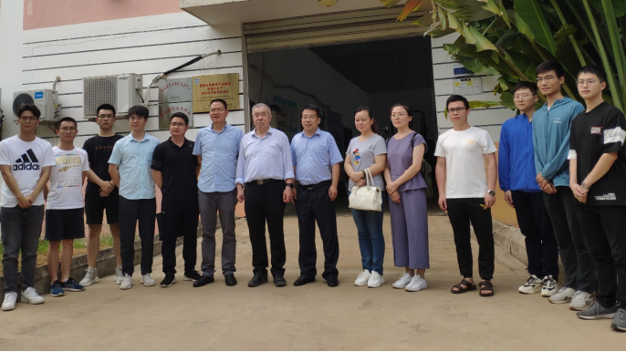 座谈会后,陈学庚院士参观了金年会官网农机实验室,张喜瑞教授对农机团队的科研情况进行了汇报和实机展示,着重介绍了智能化割胶装备的研发进展,陈学庚院士肯定了农机团队的工作,并就展示的两种割胶装备提出了改进方案。