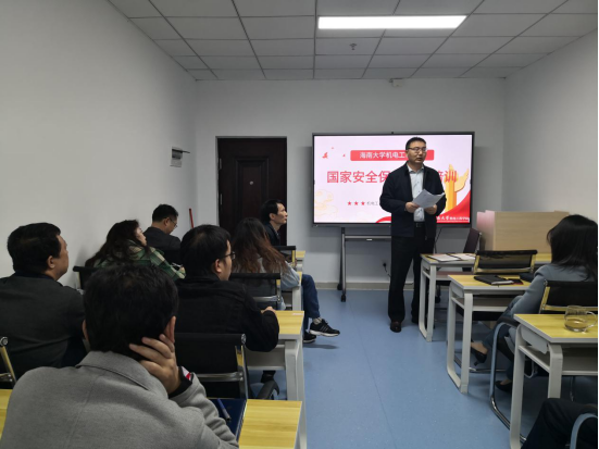 12月28日下午,金年会jinnianhuicom在研发楼413会议室举办国家安全保密教育培训。学院党委书记黄国标,院长唐荣年,副院长陈振斌、副院长马庆芬、副院长金志扬,学院各系办主任、全体教工学生支部书记参加本次专题培训。黄国标书记主持本次会议。