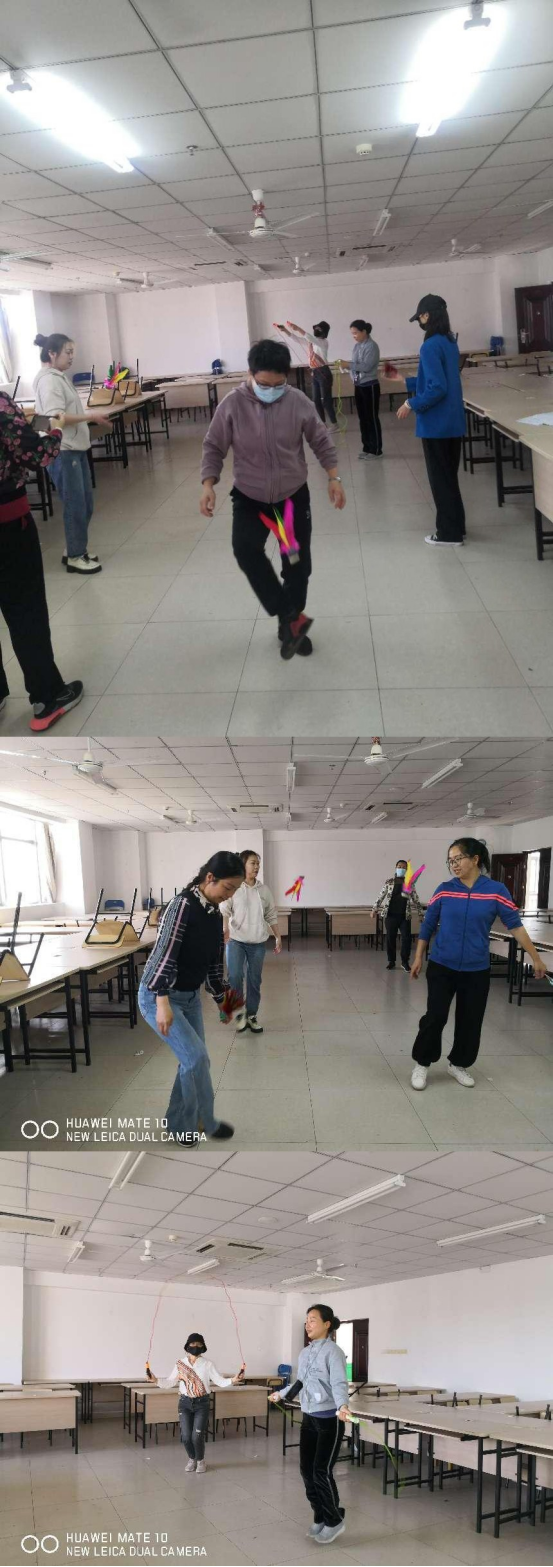 金年会官网的老师们参加完由学校工会组织的三八节徒步活动后,全体女老师们来到了金年会jinnianhuicom410会议室,参加由学院组织的三八节庆祝活动,三八节游戏活动有踢毽子、跳绳等,老师们欢声笑语,热闹非凡,学院全体老师在游戏活动结束后领取了由学院发放给老师们的三八节礼物。