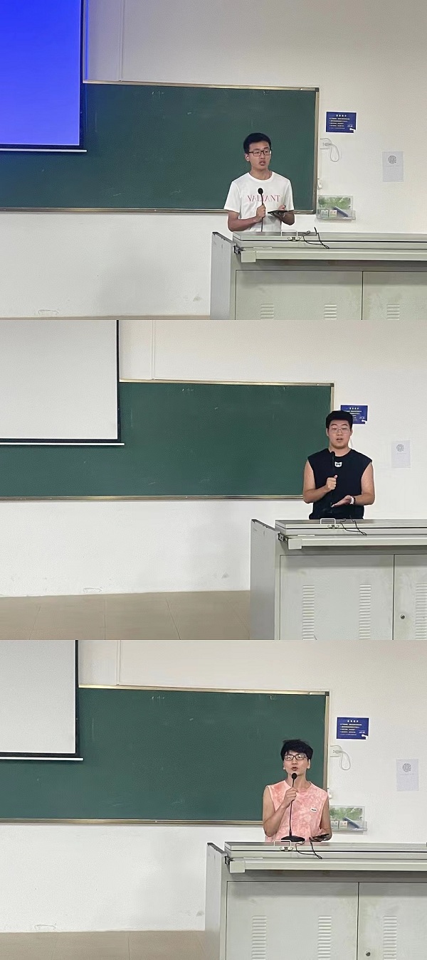 会议的第二项议程是邀请优秀学生代表分享考研经验。汽车系学生代表杨松卫、电气系学生代表潘家和、张港分别从信息查找、专业课备考、考研心态等方面分享自己的考研经验。