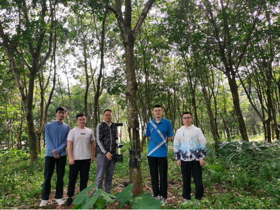近年来,依托国家天然橡胶现代产业技术体系智能化生产岗位,金年会官网天然橡胶智能化生产团队重点聚焦橡胶产业“胶工荒”的问题,突破了螺旋仿形进阶割胶技术,创新研制出五代“一机一树”式智能割胶机,均已通过胶林试验,实现了割胶深度为1.2 ~ 2.5 mm、耗皮厚度为1.1 ~ 1.8 mm范围内的毫米级精确割胶,下一步团队将进一步优化智能割胶机参数,加快产品推广。