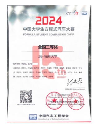 金年会官网南海方程式赛车队携第五代赛车亮相中国大学生方程式汽车大赛(简称2024FSCC),经过五天的激烈角逐,获得2024年中国大学生方程式汽车大赛全国三等奖。