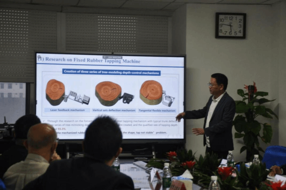 张喜瑞对拿督巴威斯一行表示热烈欢迎,介绍了金年会jinnianhuicom在热带农业和智能化农业装备研发等方面的优势、天然橡胶的产业现状及研发的割胶装备—固定式螺旋仿形割胶机和自走式智能割胶机器人。